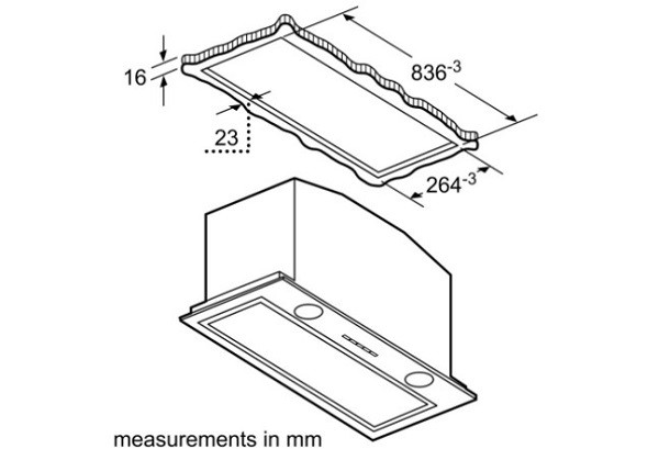Kích thước lắp đặt (HxWxD): 418 x 836 x 264 mm