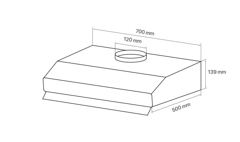 Kích thước chuẩn 700mm giúp sản phẩm dễ lắp đặt trong đa số hệ tủ bếp phổ biến hiện nay. Ngoài ra, thiết kế kính gập phía trước mang đến khả năng ngăn dầu mỡ bắn vào tường và tăng cường hiệu suất hút mùi, đặc biệt hữu ích khi nấu các món chiên xào.