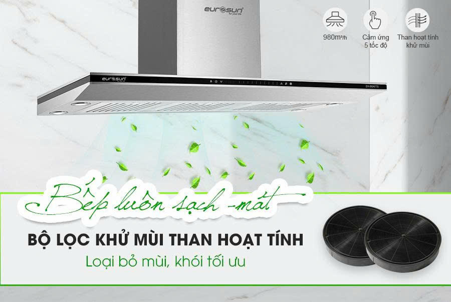 Máy hút mùi gắn tường Eurosun EH-70AF75 là sản phẩm chính hãng nhập khẩu nguyên chiếc, thiết kế sang trọng, lực hút mạnh mẽ giúp lọc không khí hiệu quả mang lại không khí tươi mới cho gian bếp của mỗi gia đình. Hút mùi Eurosun vận hành êm ái, loại bỏ mùi thức ăn hiệu quả được người tiêu dùng Việt Nam lựa chọn bởi các tính năng ưu Việt.