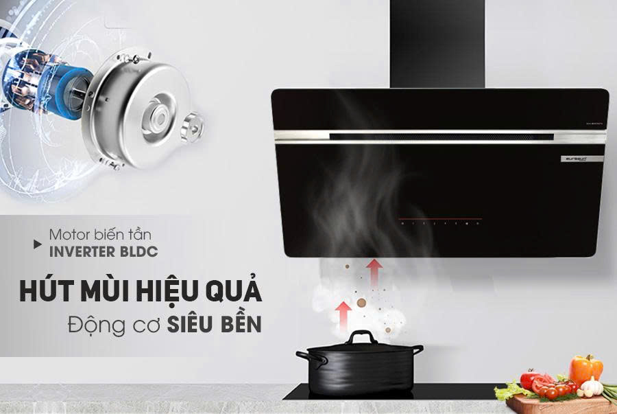 Máy Hút mùi Eurosun EH-70CN73 sử dụng động cơ biến tần thông minh INVERTER BLDC giúp tiết <50% điện năng, giảm độ ồn <40% so với động cơ thông thường.