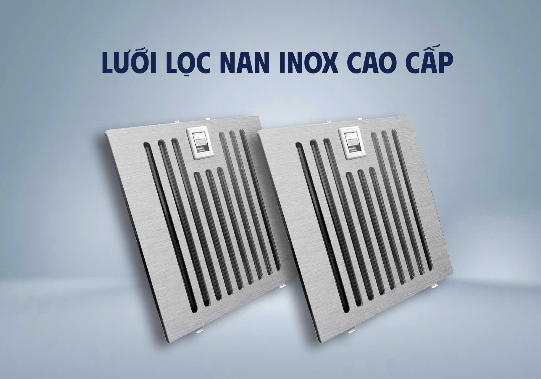 Lưới lọc dạng nan inox cao cấp có độ bền cao, giúp giảm tiếng ồn, thiết kế dễ dàng tháo rời giúp dễ dàng vệ sinh lưới lọc thường xuyên trong quá trình sử dụng.
