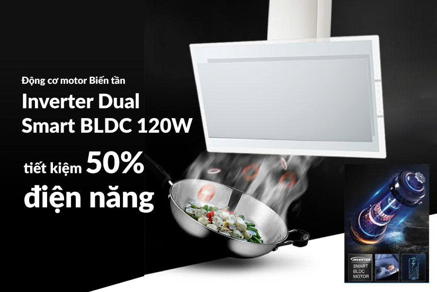 Máy Hút mùi Eurosun EH-90CN78W được trang bị động cơ biến tần thông minh INVERTER BLDC giúp tiết < 50% điện năng, giảm độ ồn < 40% so với động cơ thông thường.