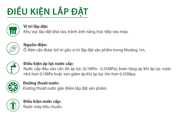 Áp suất nước cấp phù hợp: 0.1MPa ~ 0.35MPa