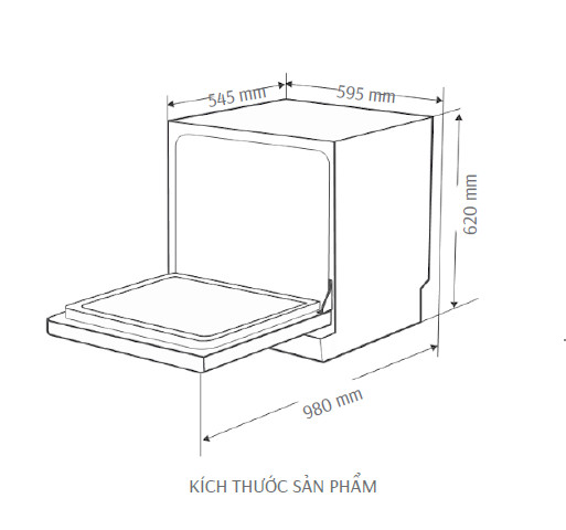 • Kích thước sản phẩm: 595x545x620mm(WxDxH)