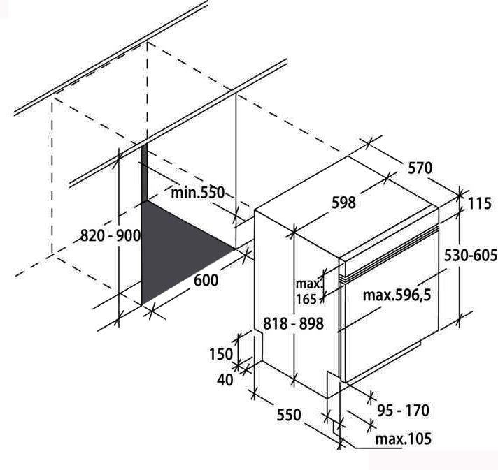 Máy rửa chén Rosieres RDSN1D530PX-47/E được thiết kế dạng bán âm tủ. Tuy nhiên, nếu muốn lắp đặt âm thì cần phải đảm bảo diện tích khoang tủ lớn hơn kích cỡ của máy, để dễ dàng sử dụng và vệ sinh.