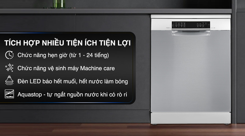 - 4 tính năng rửa thêm: Home Connect, rửa nhanh, vùng rửa mạnh, sấy thêm