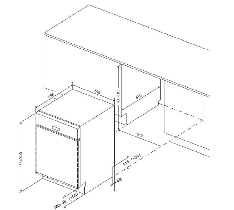 Kích thước khoét âm tủ: R605 x S(580-605) x C(780-810) mm |