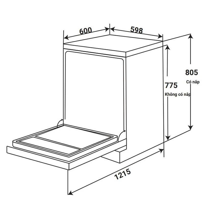 • Kích thước: 775(Không có nắp)/805(Có nắp trên)C x 598R x 600S mm |