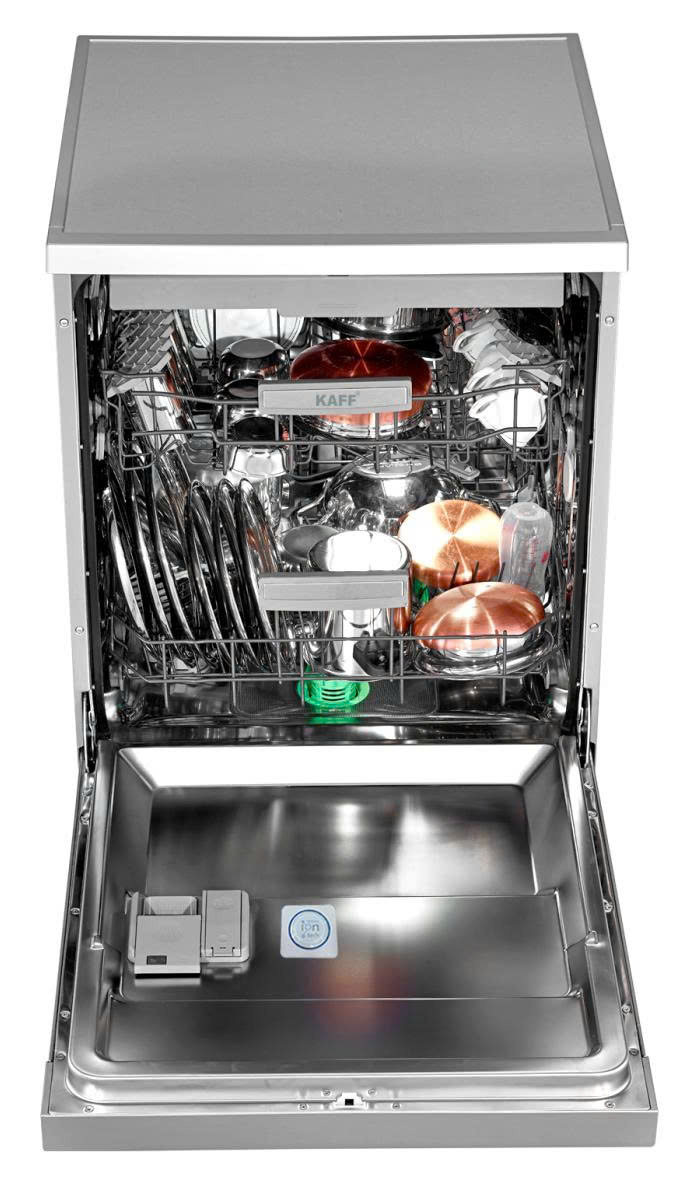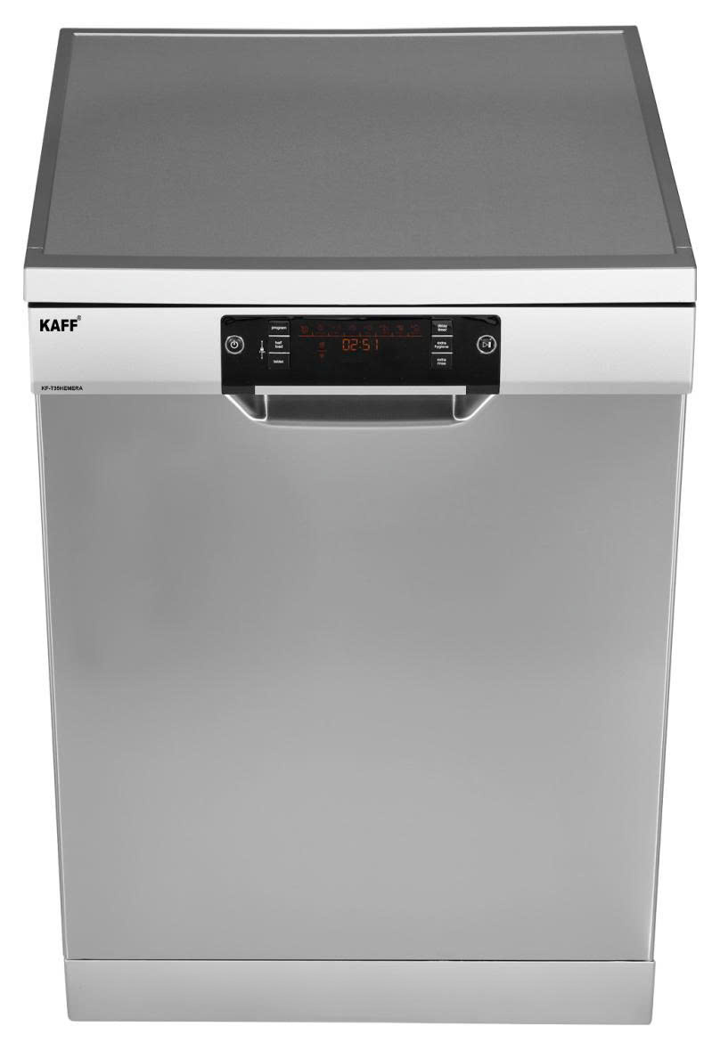 Máy rửa bát Kaff KF-T35HEMERA có công suất tiêu thụ từ 1760-2100W, lượng nước tiêu thụ trong khoảng 5.4-9 lít/1 lần rửa, cho phép rửa 15 bộ bát đĩa Châu Âu tương đương với 1,5-2 bữa ăn Việt (gia đình 4-6 thành viên). Máy trang bị 8 chương trình rửa được tùy chỉnh dễ dàng trên bảng điều khiển điện tử kết hợp màn hình LED.