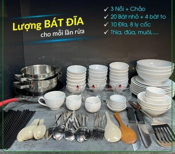 Mức tiêu thụ điện năng: 0.8Kwh/lần rửa