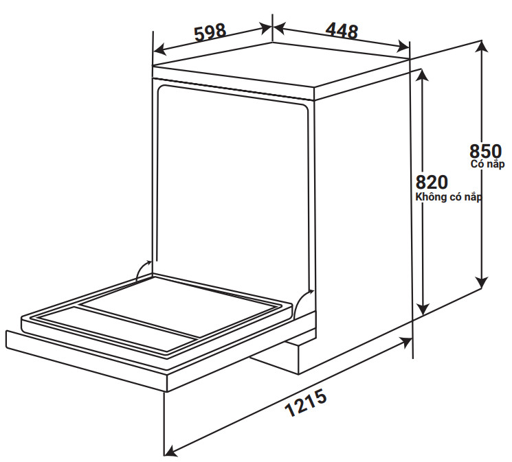 Kích thước sản phẩm: 810-850C x 598S x 448R mm