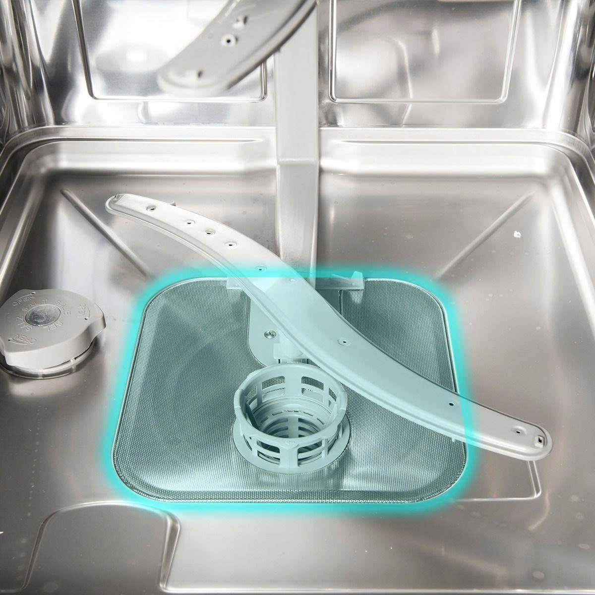 Ở phía trong bên của máy rửa bát LT-WD1304G có chứa ngăn chứa muối và ngăn chứa các chất rác trong quá trình rửa. Người dùng cần dùng loại muối chuyên dụng cho máy rửa bát. Mỗi lần đổ muối sẽ dùng được khoảng 1,5 tháng đến 2 tháng. Khi hết lượng muối cần thiết, máy sẽ báo hiệu ở trên bảng điều khiển.