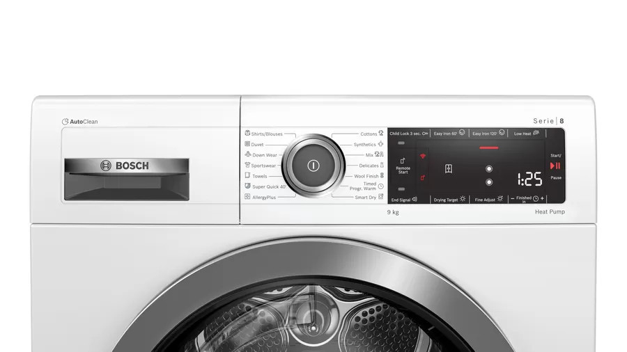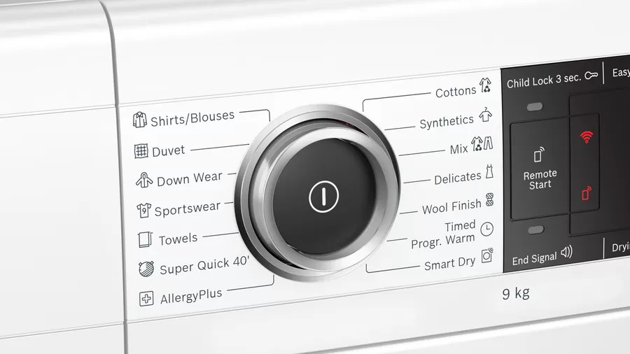 Chọn chương trình sấy phù hợp với đồ sấy thật sự khó khăn. Với công nghệ SmartDry và Home connect thì chương trình sấy được chọn tự động dựa trên chu trình giặt cuối cùng. Công nghệ này cho phép giao tiếp giữa máy giặt và máy sấy mà không cần dùng thêm ứng dụng của bên thứ 3. Việc tính khối lượng, loại vải và độ ẩm đều được ghi lại để có kết quả sấy hoàn hảo nhất