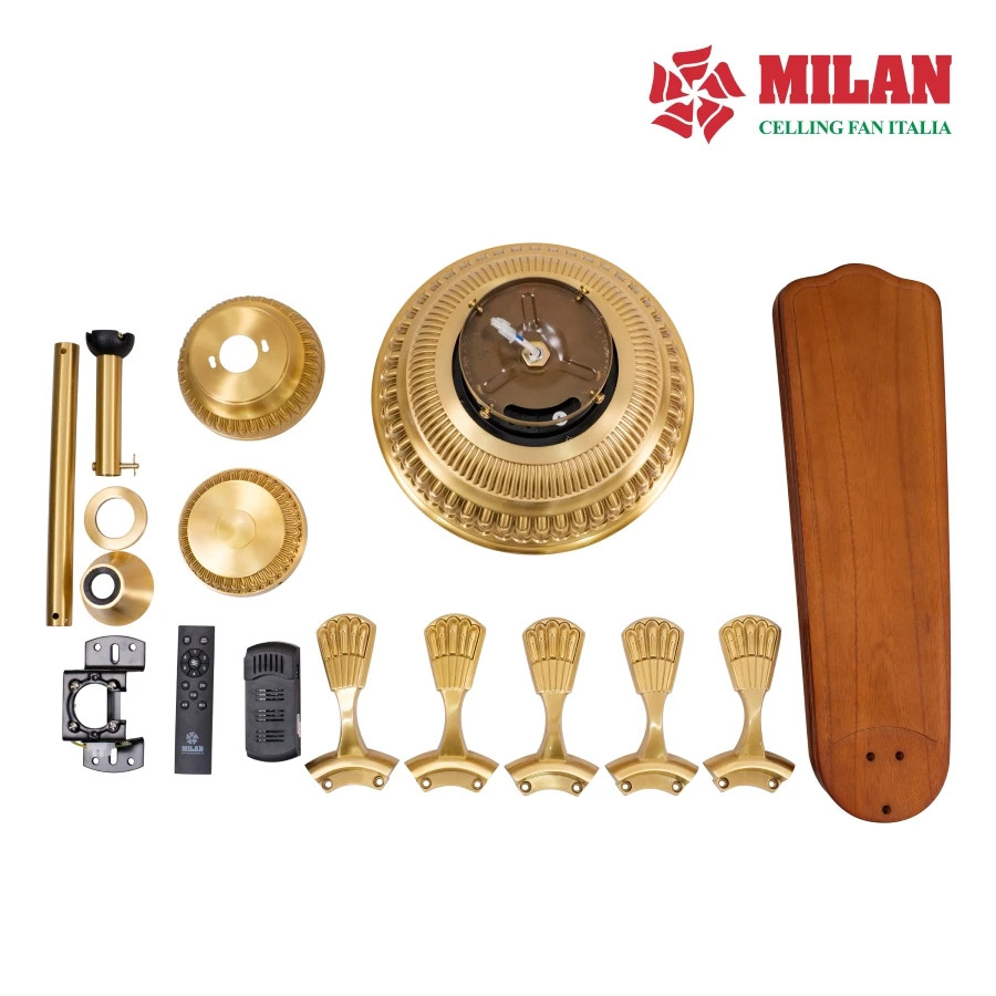 Sở hữu thiết kế 5 cánh gỗ tự nhiên cao cấp, thân màu đồng cổ Pháp tạo điểm nhấn nghệ thuật độc đáo, sang trọng cho đa dạng kiểu phong cách kiến trúc, từ cổ điển đến tân cổ điển và hiện đại. Hãy cùng Quạt trần Italia tìm hiểu về mẫu quạt trần này nhé!