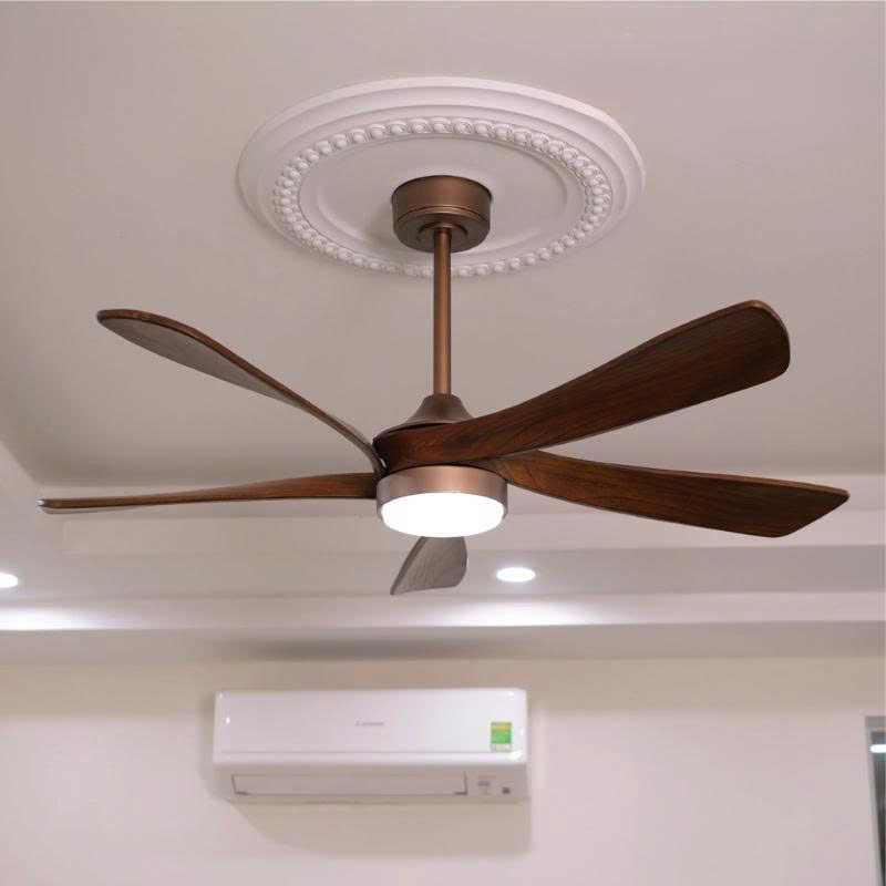 Cánh quạt được làm bằng cánh gỗ tự nhiên đã được xử lý chống cong vênh, mối mọt có độ bền trường tồn theo thời gian. Màu cánh quạt là màu gỗ óc chó đậm, vân gỗ tự nhiên càng làm tăng thêm tính thẩm mỹ cho căn phòng cũng như không gian nội thất.