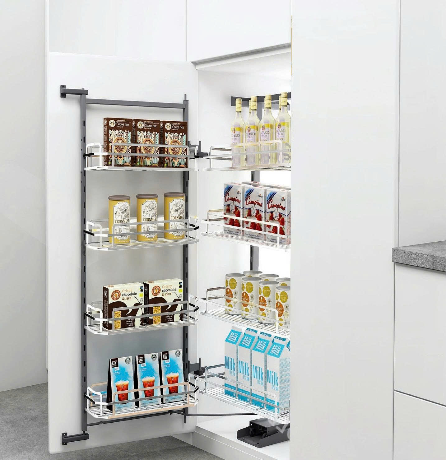 Tủ kho với cấu tạo gồm 4 tầng với 8 ngăn chứa đồ rộng rãi – như một chiếc tủ lạnh không nhiệt độ bảo quản tất cả đồ khô của gia đình một một khu vực. Vô cùng thuận tiện trong việc lưu trữ, tìm kiếm và sử dụng đồ khô hàng ngày của gia đình.