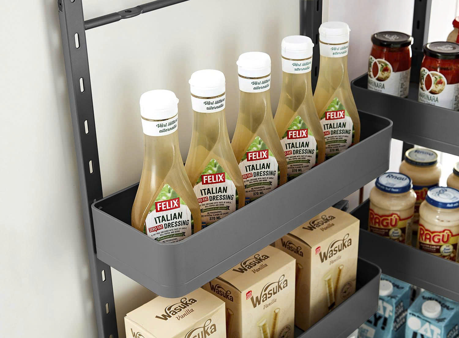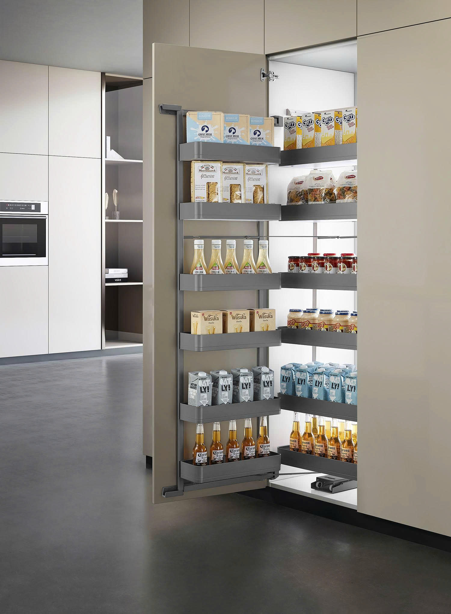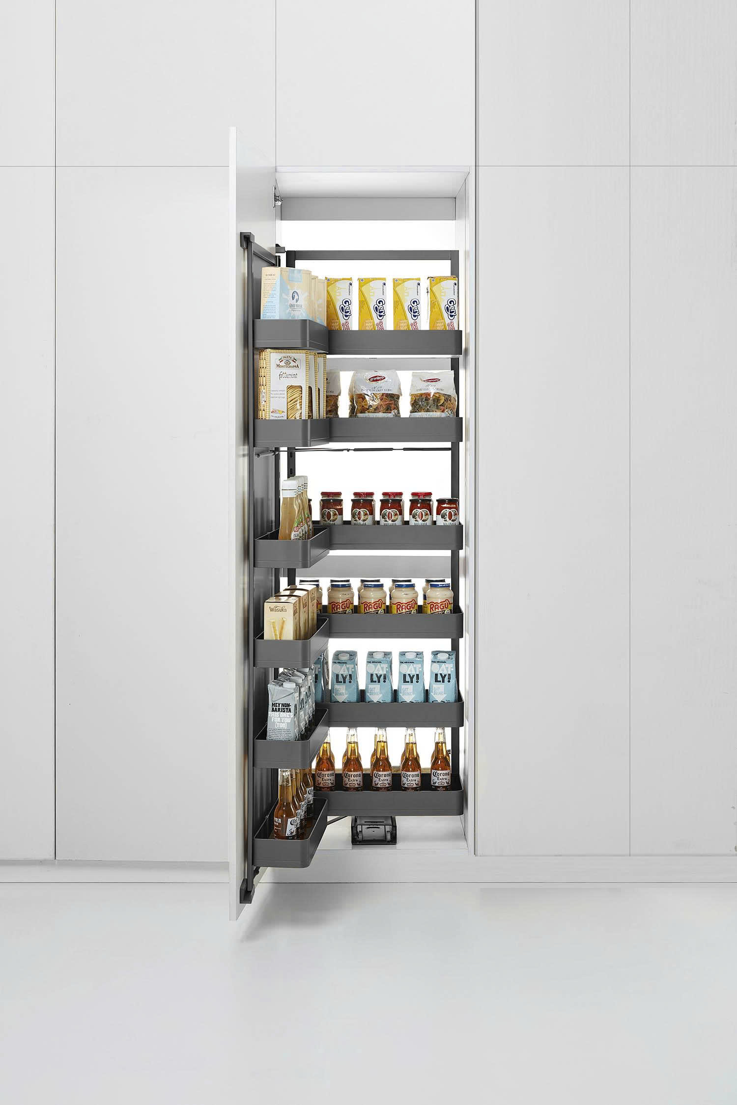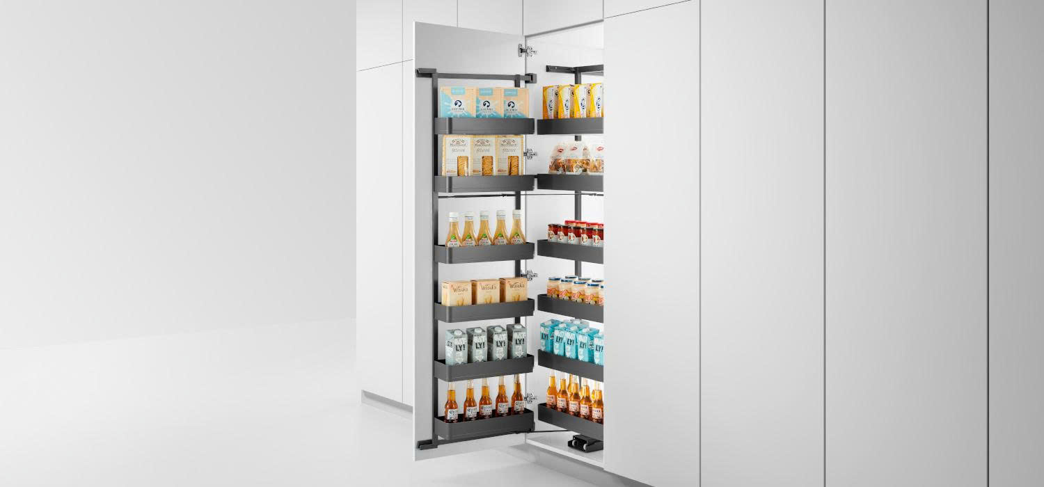 Với không gian lưu trữ lớn, tủ đồ khô 6 tầng hợp kim nhôm màu ghi đậm cánh mở 450mm 600mm Eurogold EKG15645 | EKG15660 cung cấp các khay chứa có thể điều chỉnh linh hoạt cho mọi loại vật dụng nhà bếp, dễ dàng kéo các khay chứa ra chỉ bằng việc mở cánh tủ, giúp tiếp cận mọi ngóc ngách một cách thuận tiện. Chuyển động êm ái và khả năng chịu lực mạnh mẽ.