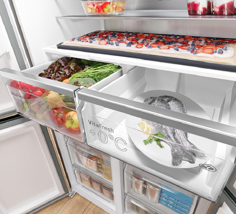 - Ngăn kéo VitaFresh Plus: ngăn kéo này giúp thực phẩm của bạn giữ được độ tươi ngon lên đến gấp đôi - nhờ nhiệt độ thấp hơn cho thịt và cá và độ ẩm tối ưu cho trái cây và rau.