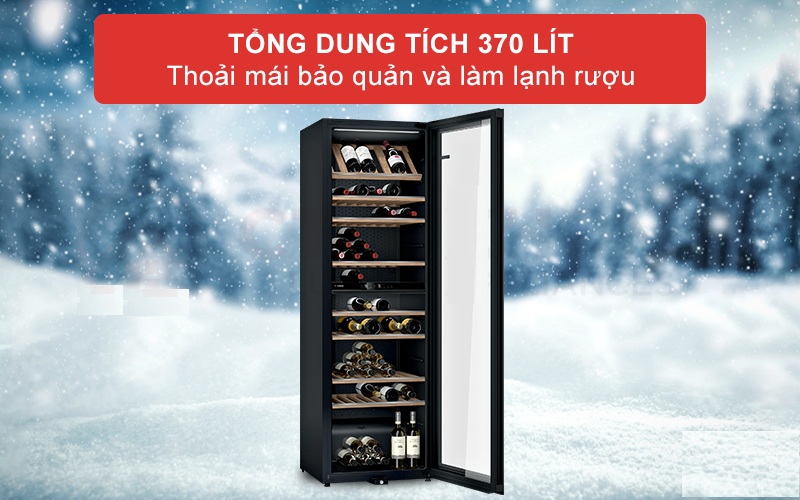 Tổng dung tích đến 370 lít cho bạn thoải mái bảo quản những chai rượu vang của mình
